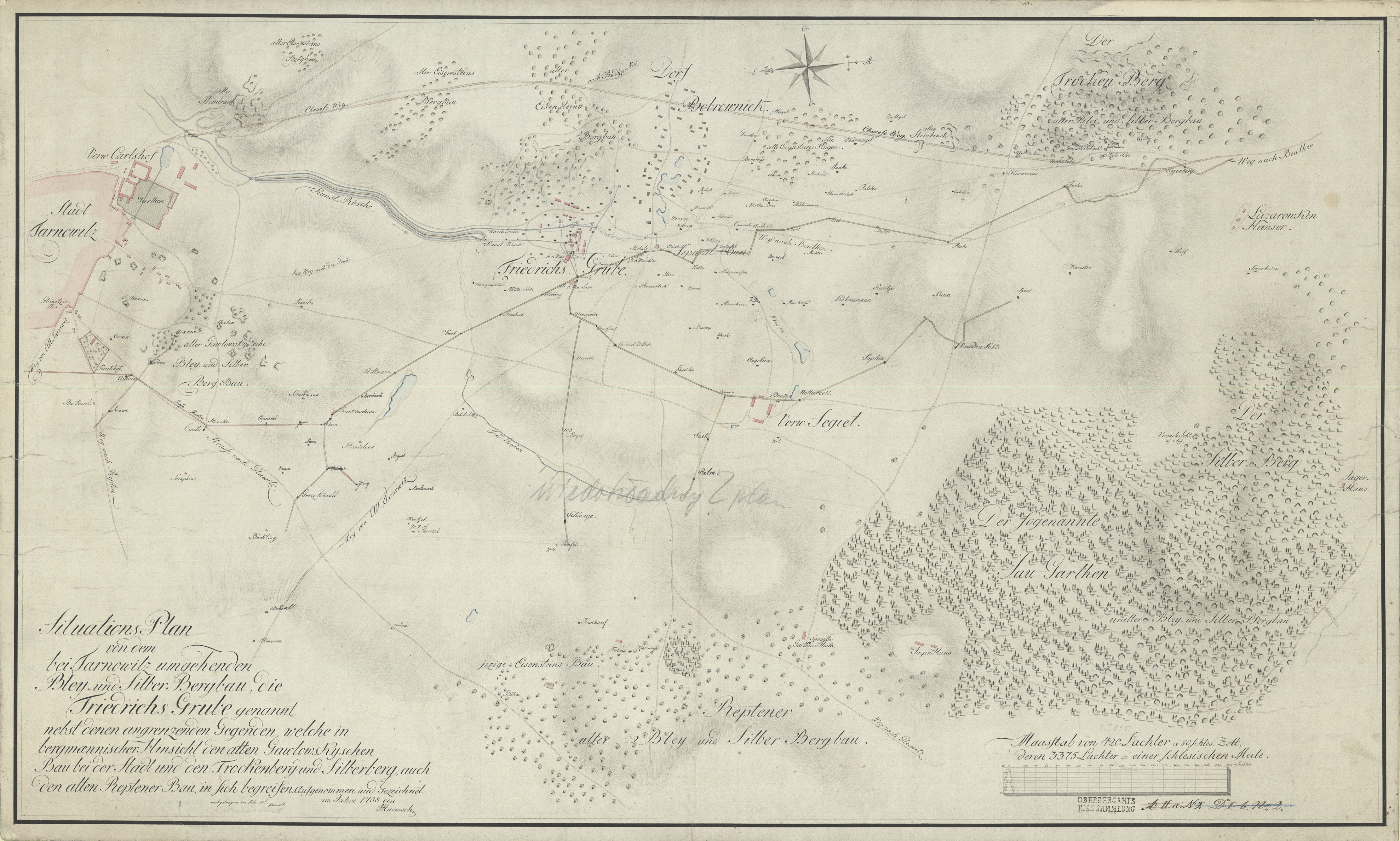 4,2 MB | Praktykant (dyskusja | edycje) | Plan kopalni ołowiu i srebra „Friedrich” koło Tarnowskich Gór (1788 rok) | 1 |